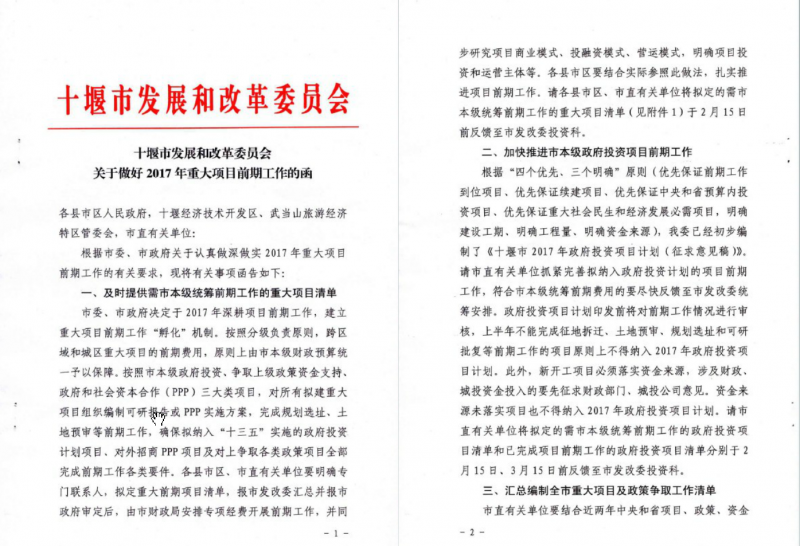十堰市發(fā)展和改革委員會(huì)關(guān)于做好2017年重大項(xiàng)目前期工作的函