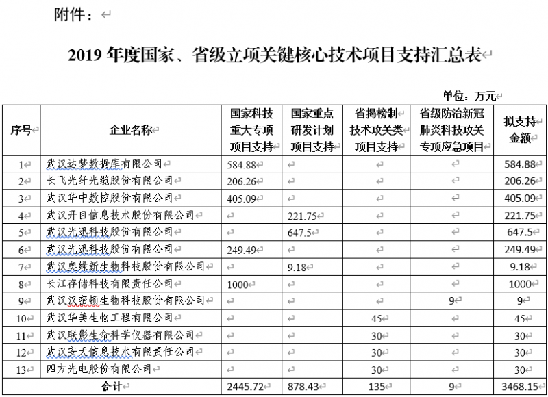按照《關于申報東湖高新區2019年度國家、省級立項關鍵核心技術項目支持的通知》要求以及管委會相關規定,經企業申報、審核、實地考察等流程,現將支持結果予以公示,公示期為2020年6月9日-6月15日。如有異議,請于6月15日下午17:00前將書面意見(蓋公司/單位公章)反饋至管委會科創局,逾期不予受理。