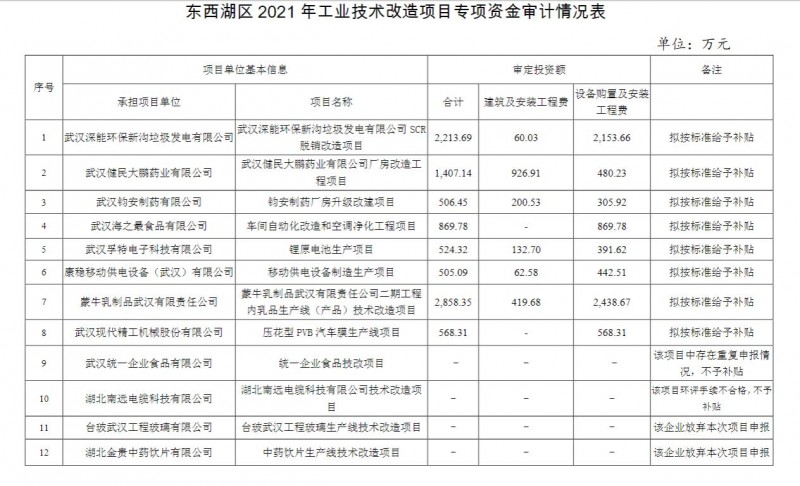 東西湖區(qū)2021年工業(yè)技術(shù)改造專項補(bǔ)貼資金審計情況公示