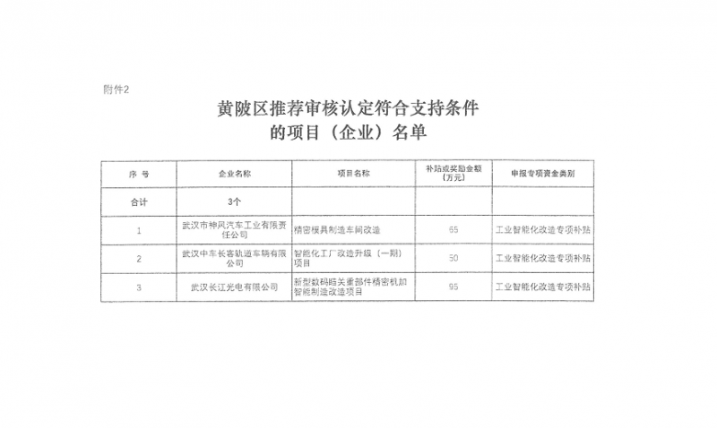 附件2:黃陂區推薦審核認定符合支持條件的項目(企業)名單