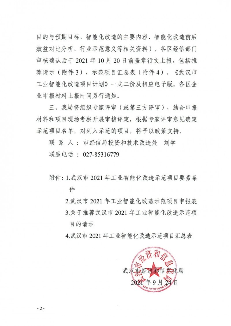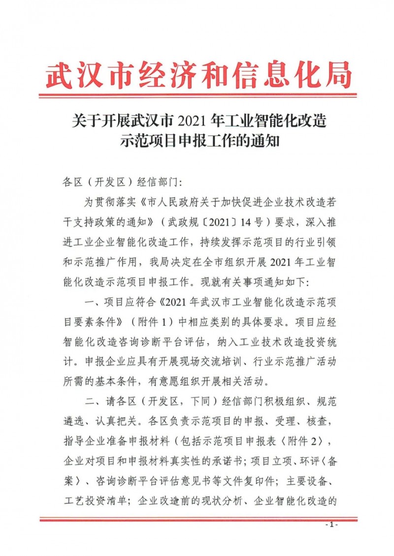 關于開展武漢市2021年工業智能化改造示范項目申報工作的通知